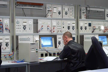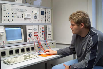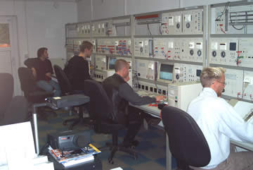 | Hier stellt Niebi jene schicksalhafte Bewegung dar, die zum wohl verheerendsten Kurzschluß in der Geschichte des EBZ führte! | "Houston wir haben ein Problem!" - Nein wir sind nicht im Nasa-Kontrollzentrum, sondern in der EIB-Ausbildungswerkstatt des EBZ! |